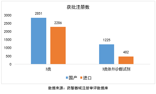 2016年,医疗器械注册获批总数为8761项,与2015年(7530项)相比,上升16%。2016国产获批数达到3039项,与2015年(2730项)相比,上升11%。同时进口获批数达到5722,与2015年(4800项)相比,上升19%。