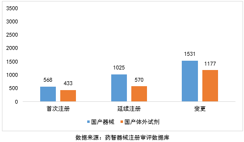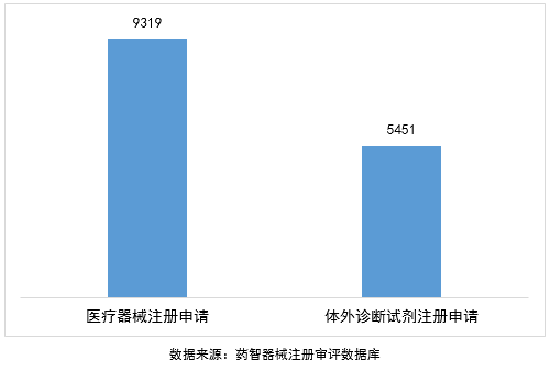 按注册品种划分,医疗器械注册申请9319项,体外诊断试剂注册申请5451项。