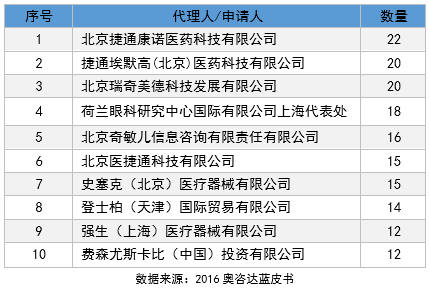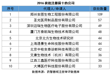 据统计,2016年医疗器械注册退审涉及企业的前十位分别是