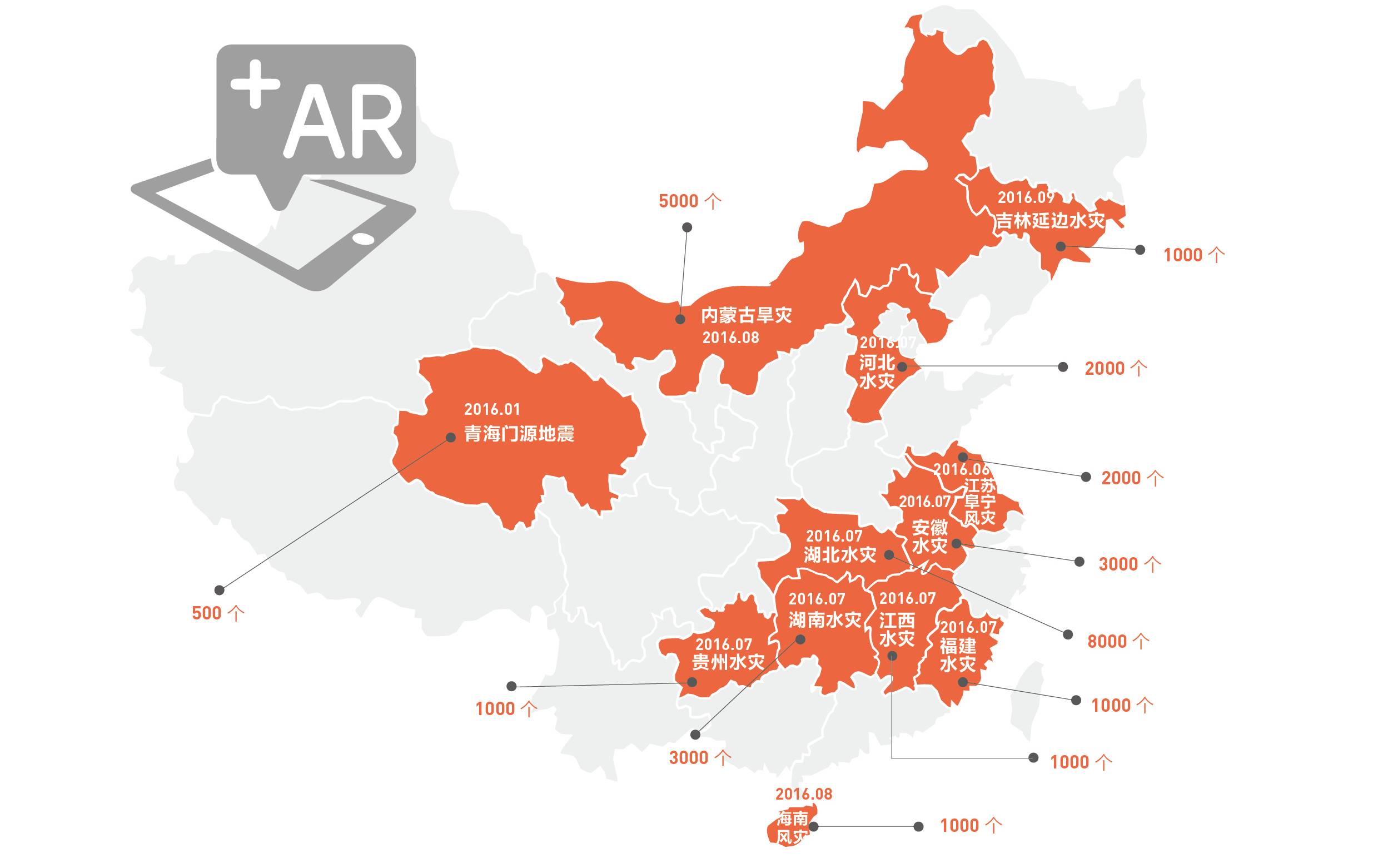 截至目前,中国红基会已累计向国内外受灾地区援助发放了 98629 只“赈济家庭箱”,执行过西南旱灾、东北水灾、鲁甸地震、尼泊尔地震救援等十余次救援任务,价值超过 2500 余万元人民币,覆盖 40 余万受灾民众。