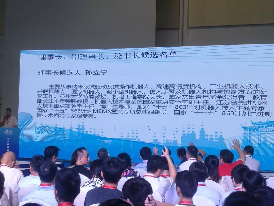 在本届成立大会共审议理事单位22余家、苏州协同创新医用机器人研究院为理事长单位,选举苏州大学孙立宁教授为医用机器人分会理事长、选举北京天智航医疗科技股份有限公司张送根、沈阳新松机器人有限公司李学威、常州脉康仪医疗机器人有限公司付宜利、微创(上海)医疗机器人有限公司何超、杭州三坛医疗科技有限公司何滨、重庆金山科技(集团)有限公司王了、广东博智林医疗机器人研究院闫维新为副理事长、选举浙江省医疗器械行业协会何涛为秘书长,苏州康多机器人有限公司孙玉宁、上海益超医疗器械有限公司冯庆宇为副秘书长。