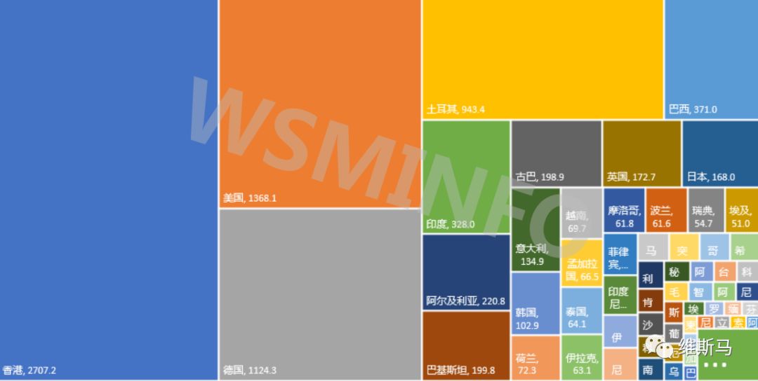 根据大连维斯马研究中心统计:2019年上半年出口TOP10国家为香港、美国、德国、土耳其、巴西、印度、阿尔及利亚、巴基斯坦、古巴、英国。