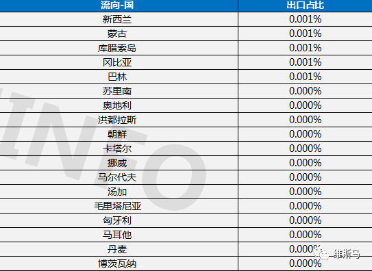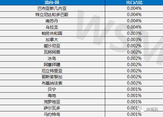 根据大连维斯马研究中心统计:从出口流向国看,2019年上半年共出口148个国家。