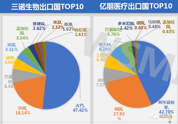 区域分析为产品向下的全部境内和境外品牌,其中艾康生物为最大的出口商,出口额高达1958万美元。