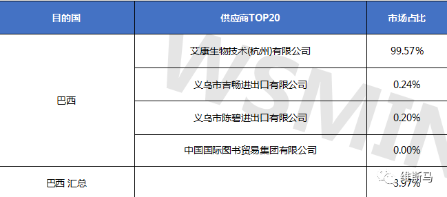 巴西市场为中国血糖仪出口第五大市场,共计4家出口商,占全年血糖仪出口3.97%的份额,艾康生物在巴西市场占有率高达99.57%。