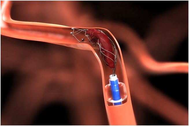 ①适用于症状发作6小时内、前循环近端大血管持续闭塞且梗死核心区小的患者,在已先接受过静脉注射组织型纤溶酶原激活物(IV t-PA)治疗后,可通过取出血栓来恢复神经血管内的血流,减低患者残障。