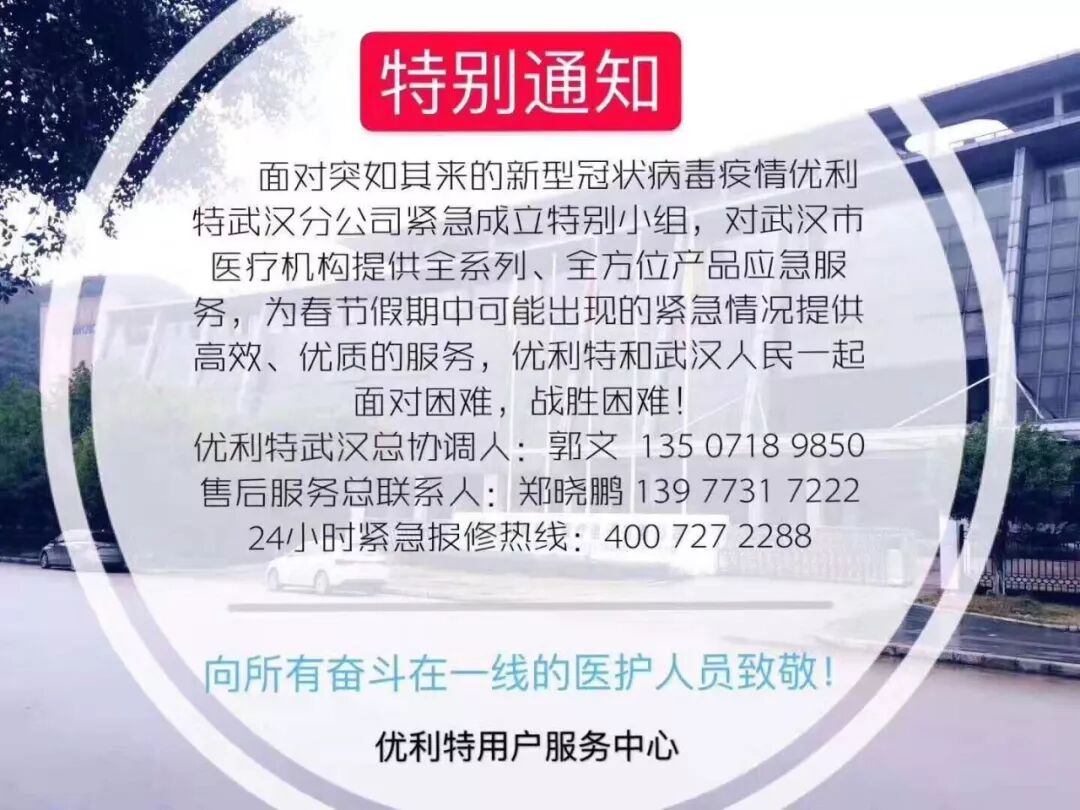 面对凶险的疾病和疫情,优利特于1月23日(农历十二月二十九)紧急成立武汉分公司疫情特别应对小组,为武汉市医疗机构提供全系列、全方位产品应急服务,共同抗击疫情,打响了优利特抗击新型冠状病毒肺炎疫情、支援湖北的第一枪。