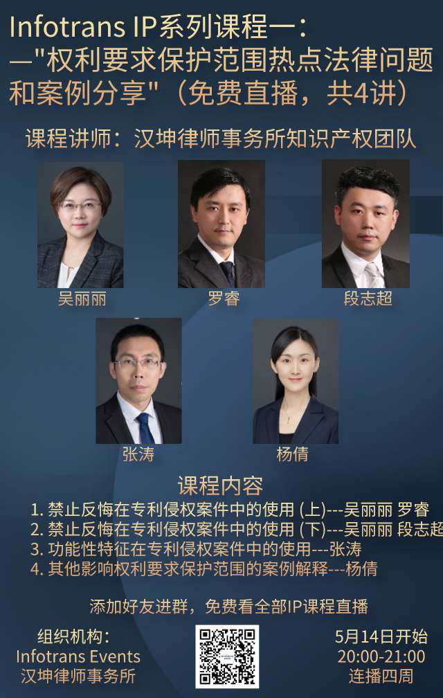本期系列课程:"权利要求保护范围热点法律问题和案例分享"