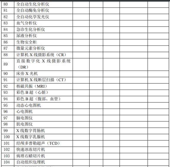全自动生化仪、CT机、X光机(DR)、心电机、呼吸机、监护仪......
