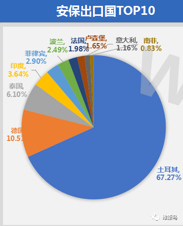 德国市场是中国呼吸系统医疗器械及耗材出口第二大市场,共计100家出口商,占全年呼吸系统医疗器械及耗材出口5.94%的份额,安保(厦门)塑胶在德国市场占有率高达33.98%。