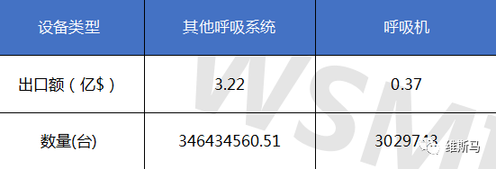 2019年上半年呼吸机整机出口0.37亿美元,占整体呼吸系统出口额10.33%;其他呼吸系统出口3.22亿美金,占整体出口89.67%,略比2018年同比微增。